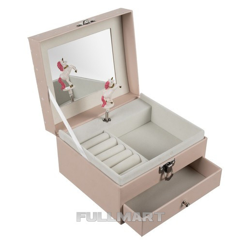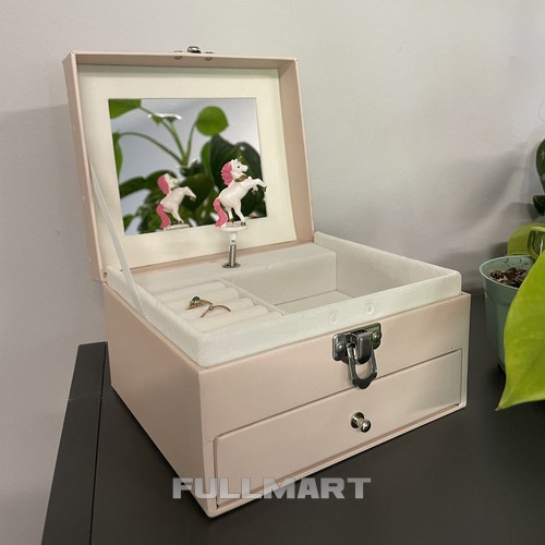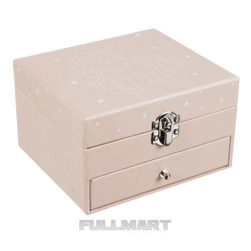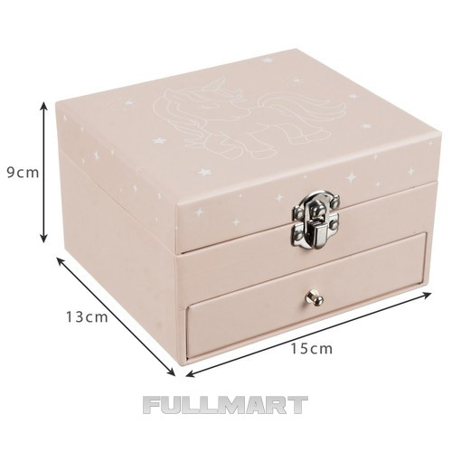 - ВМЕСТИТЕЛЬНАЯ КОРОБКА ДЛЯ ЮВЕЛИРНЫХ ИЗДЕЛИЙ - у каждой маленькой девочки есть свои сокровища, требующие особого хранения. Этот Очаровательный сундучок с музыкальной шкатулкой станет идеальным местом для всех ваших мелочей . Коробка пастельно-розового цвета изготовлена из прочного картона и украшена мотивом единорога и белыми звездами. я внутри багажника пять отделений для колец и сережек, контейнер и зеркальце . В нижней части корпуса имеется выдвижной ящик, который обеспечивает еще больше места для хранения. сувениры.
