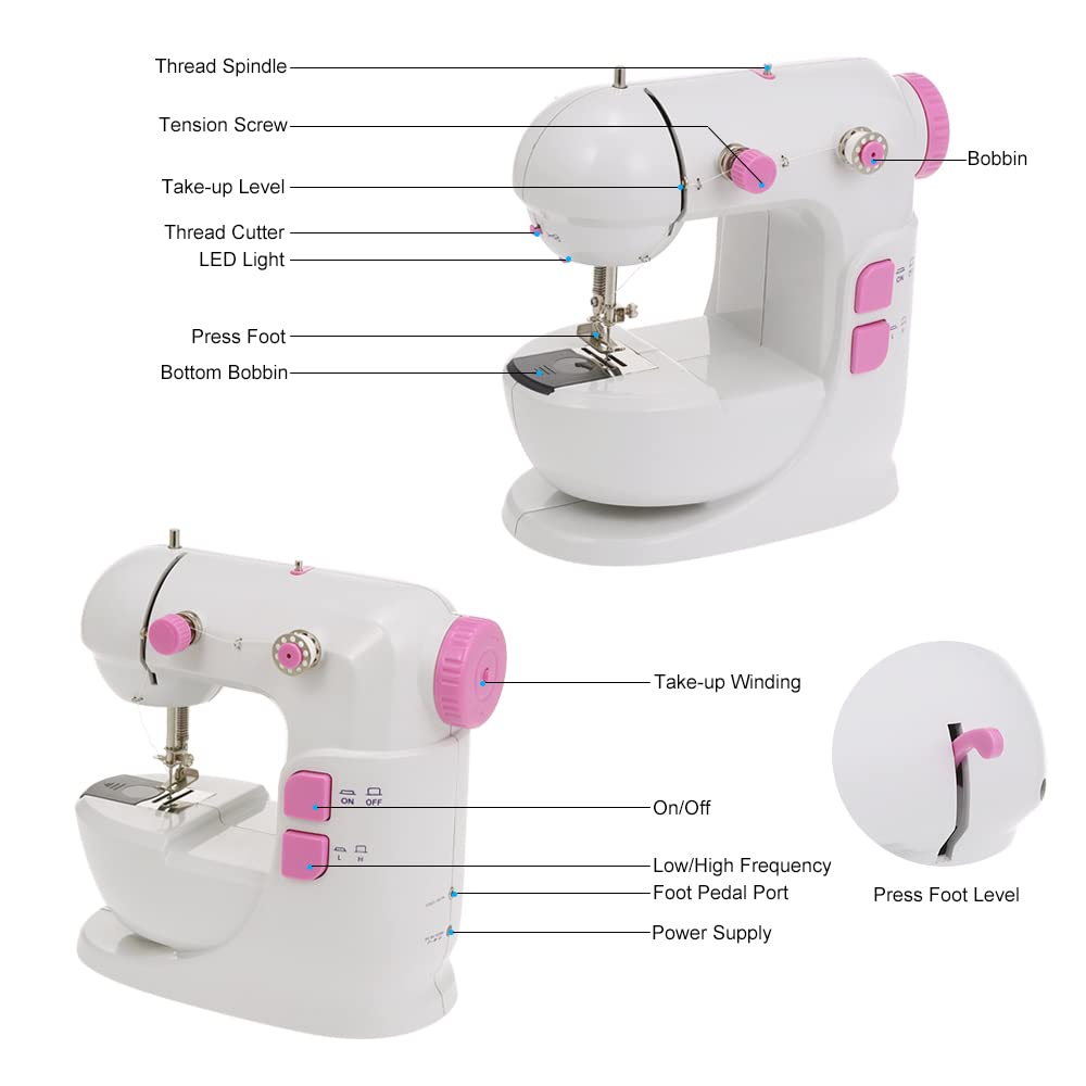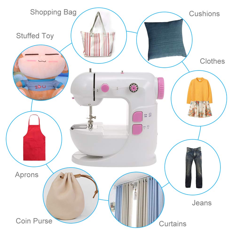 Эта мини-швейная машина обеспечивает контроль стежки и может сшивать любую ткань от тонкого шелка до жестких джинсов. С верхней катушкой (бобиной) портативная машинка делает стежки ровными. Имеет функцию автоматической обратной перемотки нити и простую кнопку включения/выключения, которая экономит ваше время и энергию.