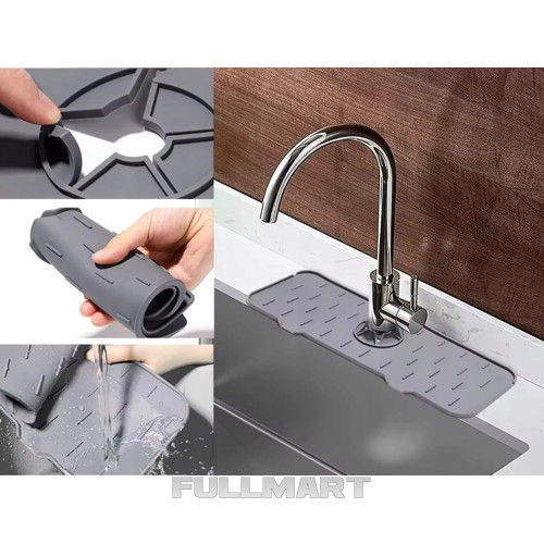 Коврик оснащен практичными сливами для воды, которые направляют влагу прямо в раковину. Благодаря этому поверхность вокруг смесителя остается сухой, а столешница защищена от пятен и разводов. Это простое решение, которое значительно облегчает поддержание порядка на кухне и повышает гигиеничность во время ежедневной стирки.