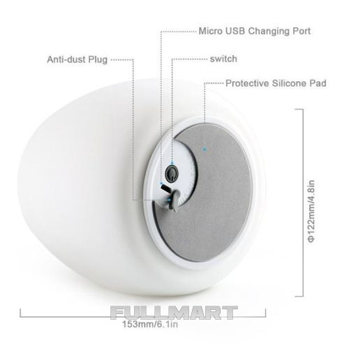 Светильник имеет 7 цветов свечения, которые переключаются легким хлопком по корпусу. Ночник имеет встроенный аккумулятор. Его можно заряжать от сети, компьютера и портативного зарядного устройства.