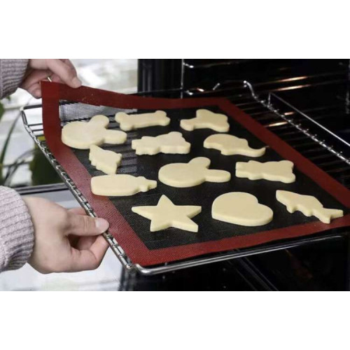 - СИЛИКОН СО СТЕКЛОСТЕКЛОМ – коврик изготовлен из силикона с сердцевиной из стекловолокна, что означает, что он выдерживает высокие и низкие температуры. Коврик антипригарный , поэтому при выпекании не нужно использовать дополнительную бумагу для выпечки.