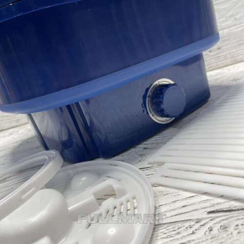 Стиральная машинка имеет функцию стерилизации при помощи озона. Питание стиральной машинки происходит от сети 220В. Ребристая крышка может служить для дополнительной ручной стирки.