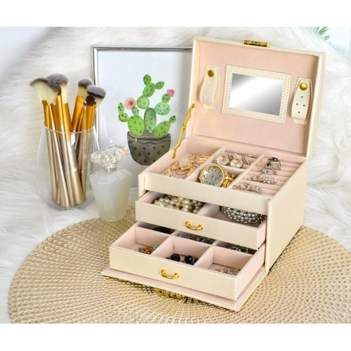 Скринька дозволить вам чудово доглядати ваші прикраси, захищаючи їх від пошкоджень, а також буде красиво їх демонструвати. Використовуйте продукт, спеціально розроблений для цієї мети, та насолоджуйтесь ідеально організованими та захищеними цінностями в одному місці.