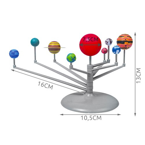 Цей унікальний набір дозволить вашій дитині самостійно створити справжню модель нашої сонячної системи . У комплект іграшки входить: шаблон з 8 планетами , підставка, фарби 7 кольорів, пензлик та невеликий складальний набір у вигляді металевих дротів , на які кріпляться кульки. Збирається дуже легко і швидко, тому ваша дитина зможе зробити всю модель самостійно.
