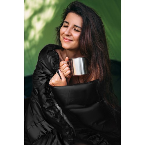 - 2 в 1 – ковдра та спальний мішок в одному. Повністю розстебнувши блискавку, спальний мішок можна використовувати як пухову ковдру. Це відмінний варіант як для кемпінгу, так і відпочинку в гостьовому будинку.