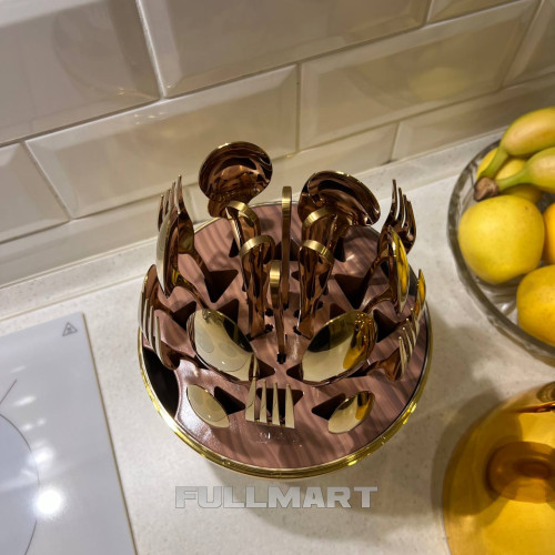 Набор столовых приборов – это незаменимый атрибут на любой кухне. Он сочетает в себе функциональность и эстетику, делая сервировку стола более удобной и красивой. Основные характеристики набора столовых приборов в Розе Высота 30 см. Диаметр 20 см. Основные характеристики приборов Длина ножей 23 см. Длина ложек 21 см. Длина вилок 21 см. Длина чайной ложки 16 см.