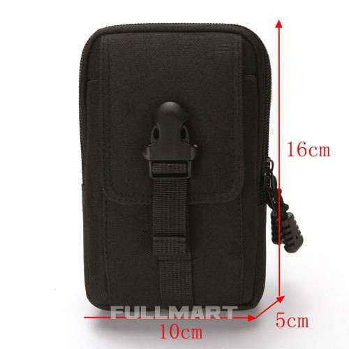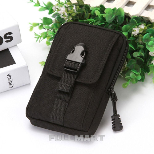 Сумка оборудована карабином для подвешивания на ремень, рюкзак, также петля для пристегивания на ремень. Сумка имеет одно отделения на молнии. На внешней стороне сумки есть отделение для смартфона с застежкой. Телефон 5.5-дюймовый легко помещается внутрь, так же можно положить его во внешний карман, с застежкой.