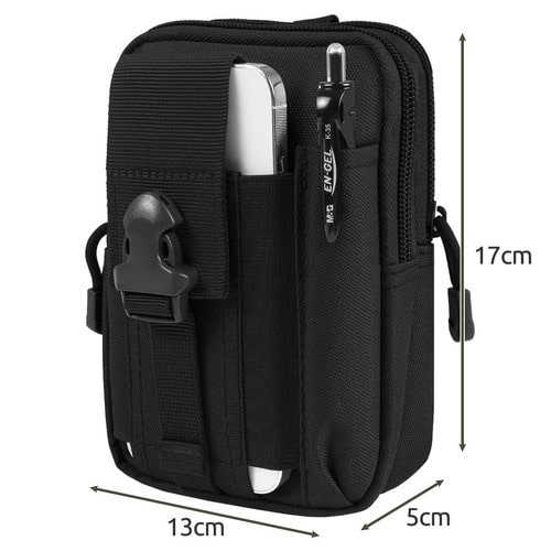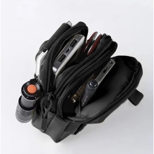 - ФУНКЦІОНАЛЬНІСТЬ - сумка оснащена двома основними відділеннями, що закриваються на блискавці зі зручними бігунками , що забезпечує швидкий доступ до її вмісту. У кожній палаті одна додаткова внутрішня кишеня ідеально підходить для зберігання дрібних предметів, таких як ключі або документи. Нирки спереду є спеціальна кишеня для телефону, що застібається на блискавку регульована пряжка ремінця з міцного поліпропіленового матеріалу. (поліпропілен), що гарантує стабільність та безпеку пристрою . Поруч із цією кишенею знаходиться місце для ручка або тонкий ліхтарик , що вкрай практично в тактичних умовах. Ззаду сумки є дві жорсткі лямки, що застібаються на міцні металеві застібки, які додатково захищають її від усунення під час використання.