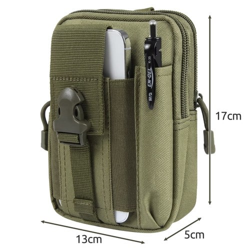 - ФУНКЦИОНАЛЬНОСТЬ - сумка оснащена двумя основными отделениями, закрывающимися на молнии с удобными бегунками , что обеспечивает быстрый доступ к ее содержимому. В каждой палате по одному дополнительный внутренний карман идеально подходит для хранения мелких предметов, таких как ключи или документы. Почки спереди есть специальный карман для телефона, застегивающийся на молнию регулируемая пряжка ремешка из прочного полипропиленового материала. (полипропилен), что гарантирует стабильность и безопасность устройства . Рядом с этим карманом находится место для ручка или тонкий фонарик , что крайне практично в тактических условиях. Сзади сумки имеются две жесткие лямки, застегивающиеся на прочные металлические застежки, которые дополнительно защищают ее от смещения во время использования.