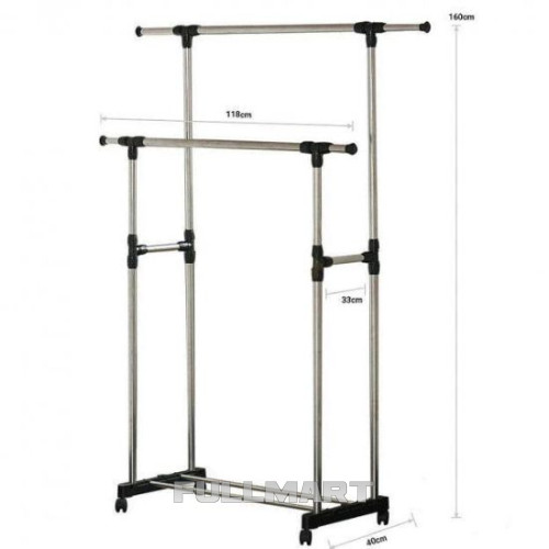 Большим плюсом стойки для одежды Double Pole Clother Hose является наличие небольших колесиков, благодаря которым Вы сможете передвинуть стойку даже полностью завешенную одеждой.