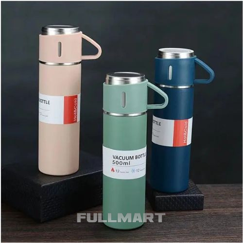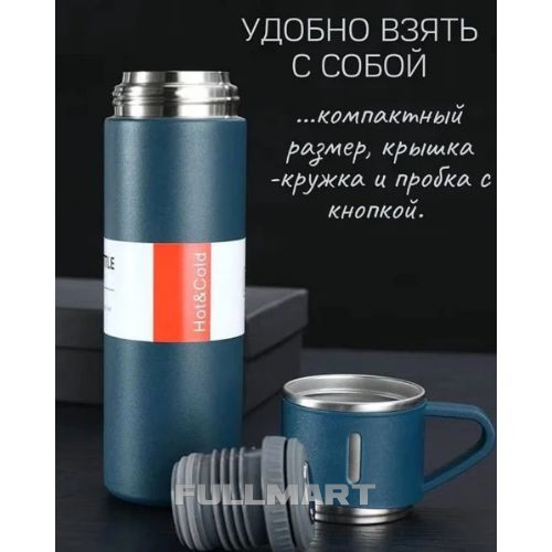 Набор содержит термос из нержавейки объемом 500 мл и чашка из нержавеющей стали объемом 70 мл.
