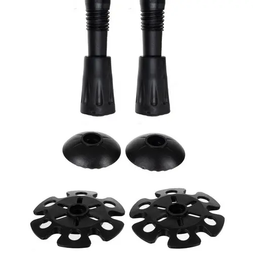 - Додаткові амортизатори + кришка - У комплект входять амортизуючі наконечники, які захищають наконечники при ходьбі по твердих поверхнях, наприклад, бетону або асфальту, та запобігають ковзанню палиць по різних поверхнях (бруд, сніг). Це робить ціпки універсальними та придатними для використання на різних трасах та поверхнях. Набір поміщень у тканинний чохол з куліскою та стопором . Шнурок довгий, його можна прикріпити, наприклад, до рюкзака.