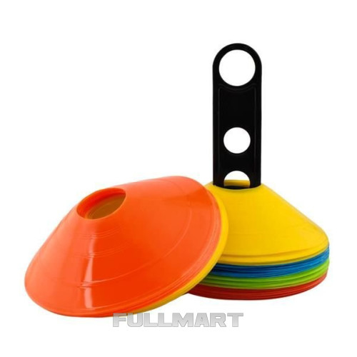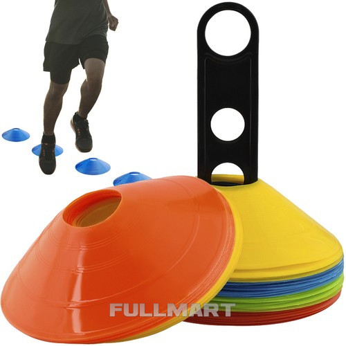 - 50 ШТУК — 10 штук каждого цвета предоставляют широкие возможности для разметки мест на той или иной тренировочной площадке.