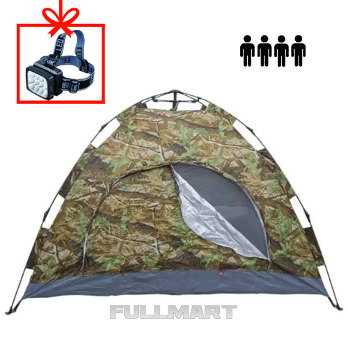 Туристическая палатка автомат 4-местная 200х200х145см камуфляж + Фонарь налобный YAJA YJ-1837