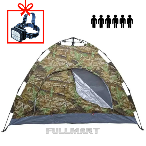 Туристическая палатка автомат 6-местная 230х175х160см камуфляж + Фонарь налобный YAJA YJ-1837