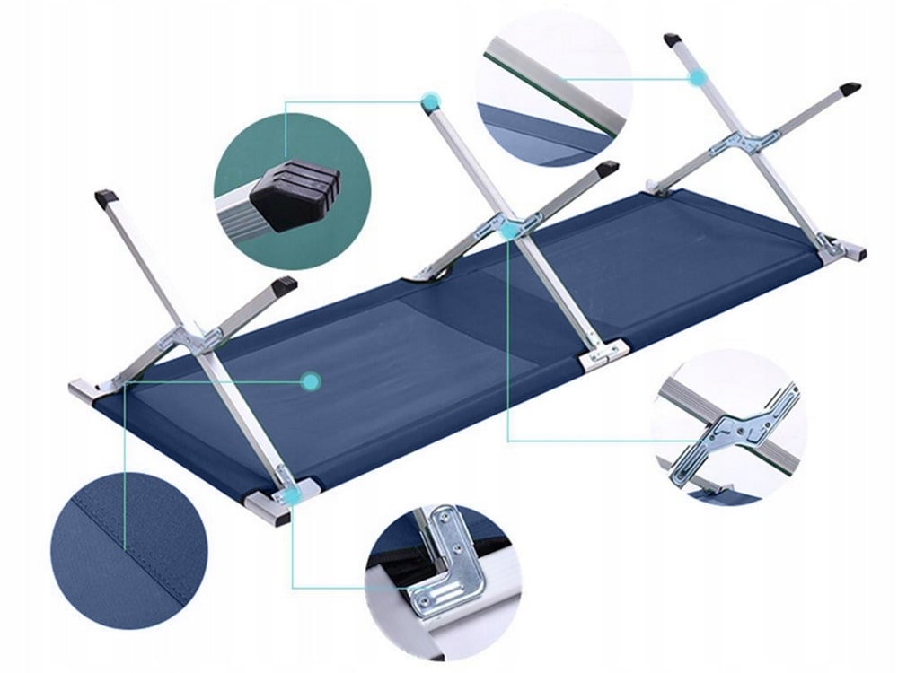 Раскладушка изготовлена из прочной ткани и прочного стального каркаса, что обеспечивает устойчивость во время использования. Усиленный каркас и продуманная конструкция позволяют использовать ее взрослым весом до 110 кг. Натяжное полотно кровати обеспечивает комфортную поддержку всего тела.