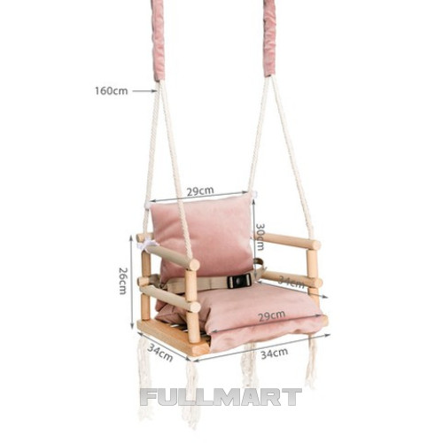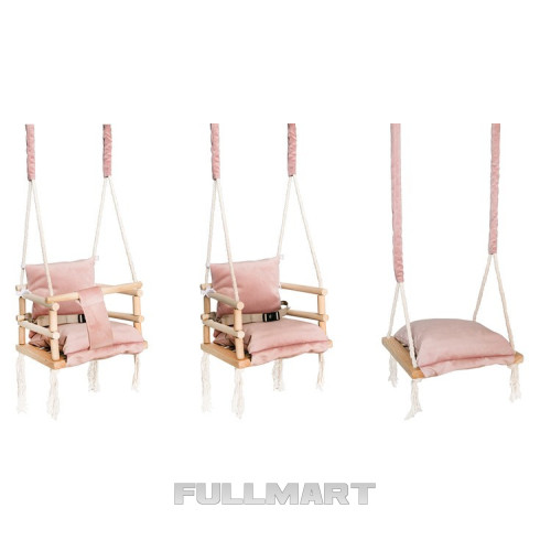 - СПЕЦІФІКАЦІЯ - колір: рожевий; матеріал: Cleanaboo® + сосна ; вік: рекомендується з 8 місяців; максимальне навантаження: 30 кг; канати: фі 10мм; розміри гойдалки (довжина/ширина/висота): 34/34/26см; вага: 2,7 кг.