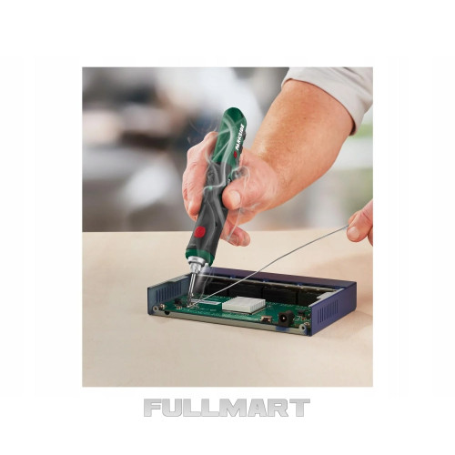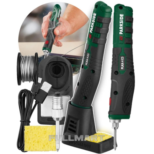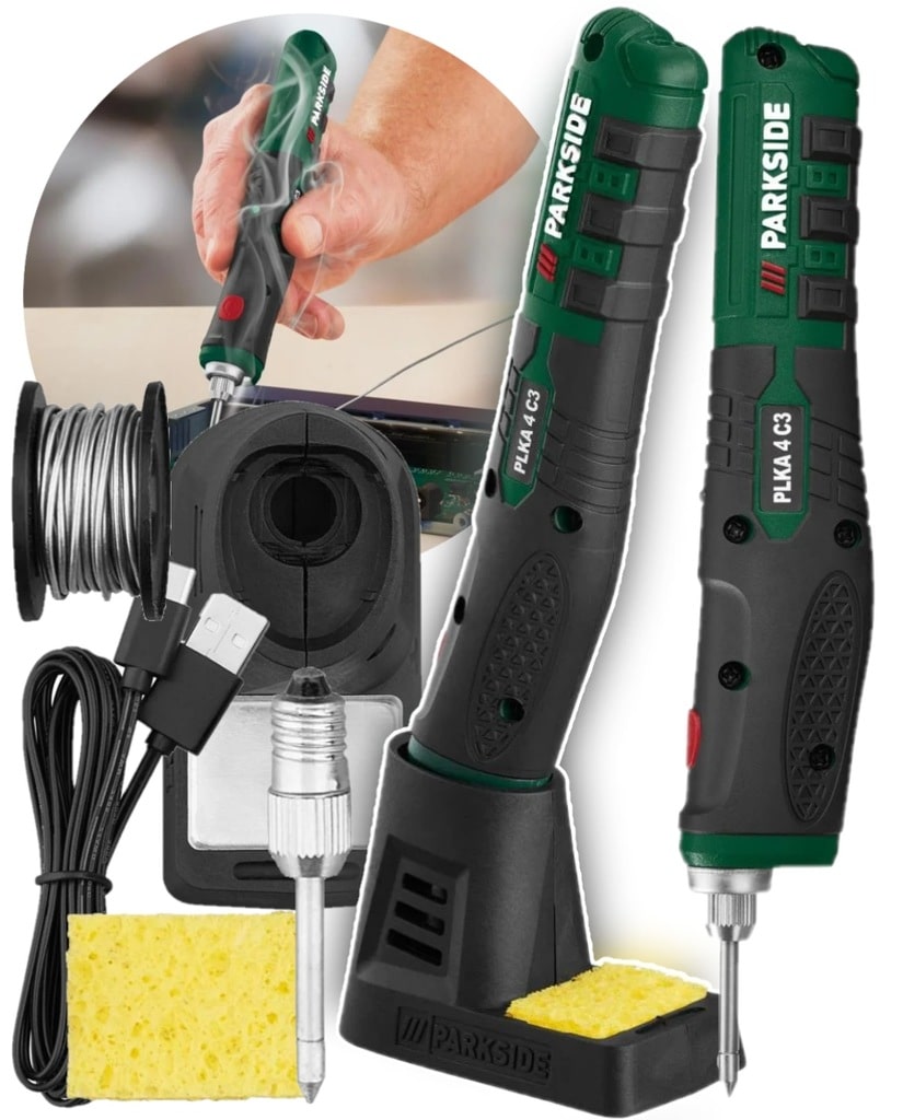 Комплектація: 1 паяльне жало, 10 г припою (Ø 1,0 мм у рулоні), 1 станція з вбудованою полицею для губок, 1 губка для очищення паяльних жал, кабель USB-C для зарядки (1 м)