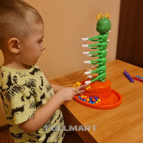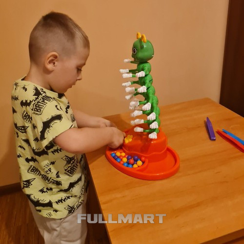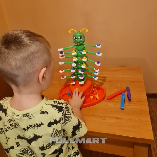 как играть в игру - игру выигрывает тот игрок, который первым за кратчайшее время разместит все свои шарики на лапках гусеницы с помощью пинцета !