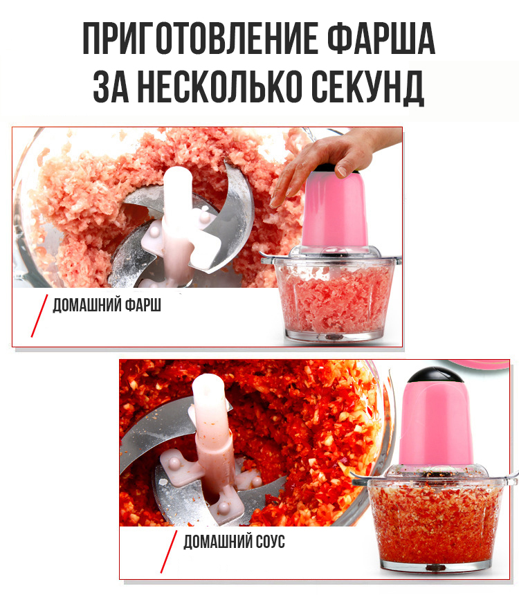 Електричний подрібнювач «Блискавка» наріже та подрібнить будь-які продукти блискавично: від овочів та фруктів до м'яса, сиру, кавових зерен і навіть льоду. Це можливо завдяки гострим ножам із високоякісної нержавіючої сталі та суперпотужному мотору. Цей пристрій настільки простий і безпечний в експлуатації, що ним може користуватися навіть дитина.