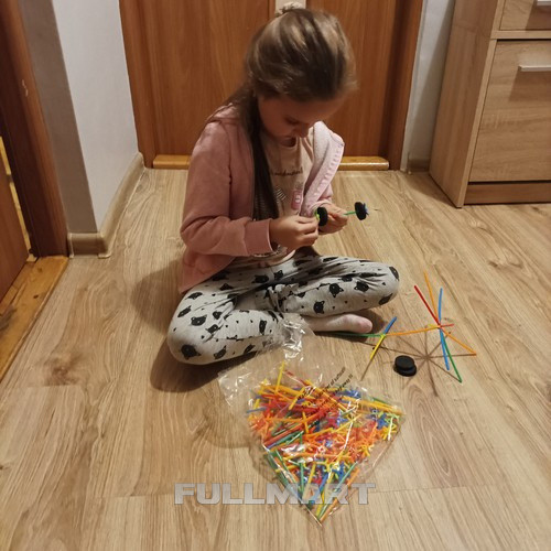 238 ЭЛЕМЕНТОВ ! – в наборе 120 разноцветных трубочек, 114 соединителей и 4 пенопластовых кольца, что позволяет реализовать практически бесчисленное количество проектов. Колеса, входящие в комплект, позволят разнообразить конструкцию, например, создавать транспортные средства, тележки и т. д.