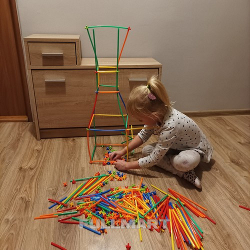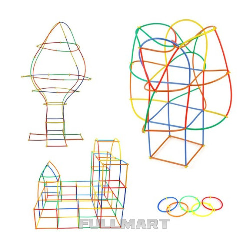 - аж 408 ЕЛЕМЕНТІВ ! - У наборі 204 соломинки різного кольору (102 короткі, 102 довгі) та 204 з'єднувачі, що дозволяє реалізувати практично незліченну кількість проектів. Весь набір упакований у сумку, що дозволить дитині зручно зберігати та переносити блоки.