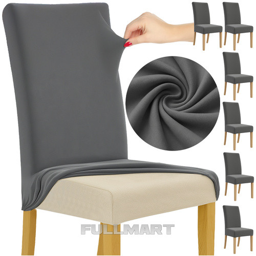 Чохли на стільці RUHHY, комплект із 6 шт. - Універсальні, сірі, еластичні, м'які 65х40х35 см