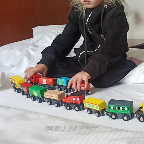 - ПРОЧНЫЙ И ПРОЧНЫЙ - поезд изготовлен из высококачественного материала, такого как дерево, что делает его прочным и наверняка прослужит долго. Соединение поездов с вагонами с помощью магнитов.
