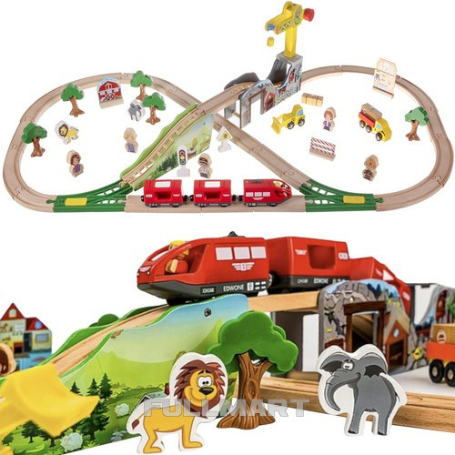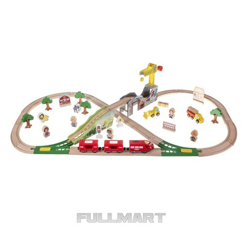 - БОЛЬШОЙ НАБОР ИЗ 57 ЭЛЕМЕНТОВ - набор состоит из 57 тщательно изготовленных и красиво обработанных элементов. который можно оформить по вашему желанию . В комплект входят, среди прочего, трасса, пассажирский поезд, строительные машины, набор деревьев и знаков, фигурки, животные и кран. Элементы поезда соединяются с помощью магнитов . Магниты сильные - не отпускают, даже когда весь комплект поднят.