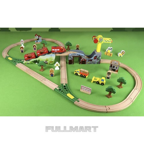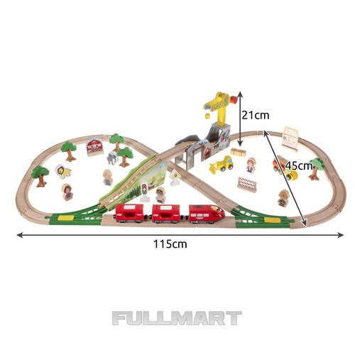 - СПЕЦИФИКАЦИЯ — материал: дерево; блок питания поезда: 1x АА (не входит в комплект); длина трассы: 3,2 м; размеры платформы (мост): см; размеры в разложенном виде: 115 х 45 х 21 см; вес: 1,832 кг; вес с упаковкой: 2,509 кг.