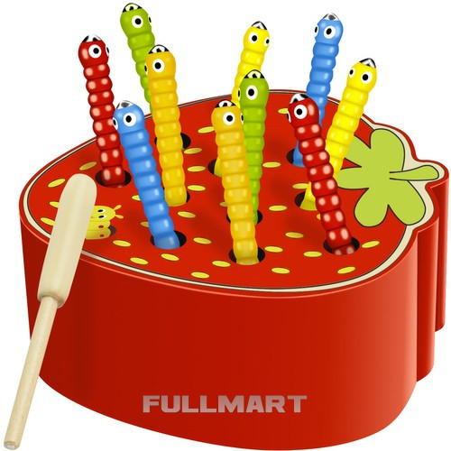 - ПОЙМАЙТЕ ЧЕРВЯ! - эта уникальная деревянная игра станет отличным занятием для вашего малыша. В игре нужно ловить деревянной палочкой с магнитом червей, спрятанных в отверстиях фруктов, а затем вставлять их обратно . Это большая задача для малыша, требующая концентрации и ловкости рук.