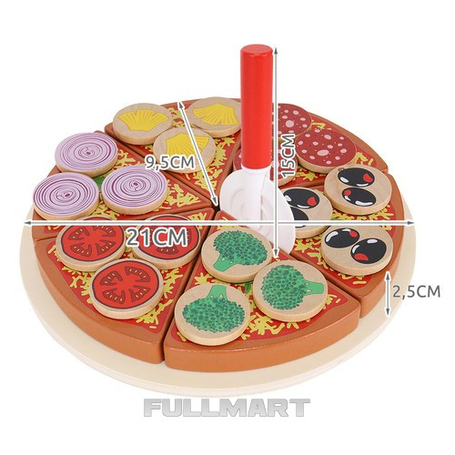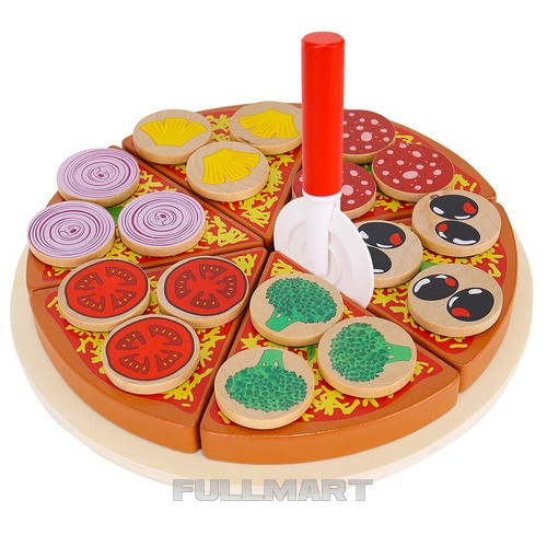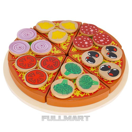 - В КОМПЛЕКТЕ - в набор входит целых 27 элементов: подставка, 6 кусочков пиццы, лопатка, нож для деления теста, а также по 3 кусочка ананаса, лука, помидора, брокколи, оливок и салями. Все сделано из качественного дерева. окрашены специальной краской, безвредной для здоровья . Кроме того , у него есть застежка-липучка, которая позволяет разрезать пиццу и складывать ее обратно после игры .