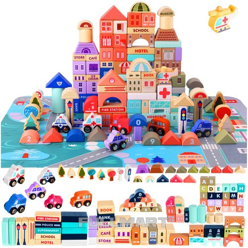- ТВОРЧЕСКОЕ И СЧАСТЛИВОЕ РАЗВЛЕЧЕНИЕ – деревянные городские кубики – это мечта каждого ребенка, который любит строить различные типы сооружений. Возможности для развлечения и ролевых игр здесь практически безграничны, поэтому это игрушка, которая эффективно справляется со скукой.