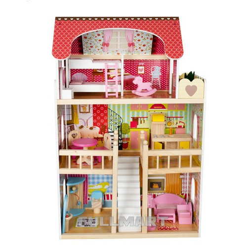 - ПРОСТОРНЫЙ - деревянный кукольный домик рассчитан на семью из 4-х кукол. Он имеет 3 уровня, соединенных красивой белой лестницей, целых 5 комнат и балкон. Каждая кукла мечтает о таком большом доме!