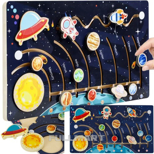- ОБРАЗОВАТЕЛЬНАЯ ЗАГАДКА С СОЛНЕЧНОЙ СИСТЕМОЙ - деревянный пазл «Солнечная система» интерактивное образовательное развлечение , которое развивает знания ребенка о планетах и космосе . Они размещены на доске подвижные, красочные элементы, изображающие все планеты солнечной системы . Задача ребенка – перемещение планет в специальных кранах и сопоставление им соответствующих названий и номеров виден в нижней части платы. Каждая планета точно пронумерована, что является дополнительным поддерживает изучение порядка планет в Солнечной системе . Это идеальная игрушка, которая сочетает обучение с развлечением, развивая при этом моторику.