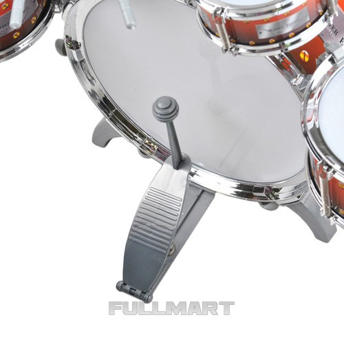 - материал: 5 шт барабаны (АБС) + 3 шт. палочки для еды (АБС) + тарелка (нержавеющая сталь + АБС) + табурет (АБС) + педаль (АБС + нержавеющая сталь)