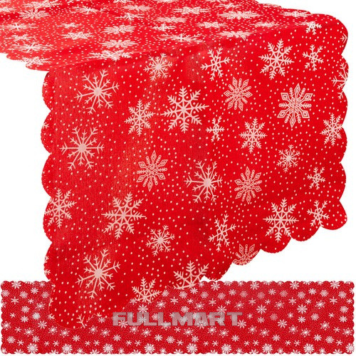 ДЛИННАЯ РОЖДЕСТВЕНСКАЯ СТОЛОВАЯ ПОДГОТОВКА, КРАСНАЯ, С БЕЛЫМИ СНЕЖИНКАМИ, 185 x 35 см