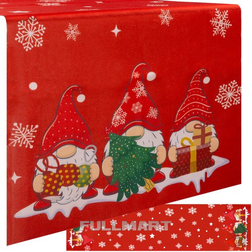 - УКРАШЕННЫЙ - украшен мелким узором изображающие белые снежинки и звезды, а на концах красивые гномы с подарками в руках . Он станет прекрасным дополнением белой скатерти или эффектным дополнением классической белой посуды.