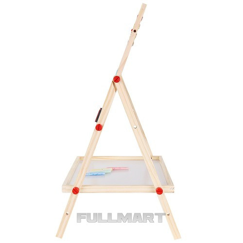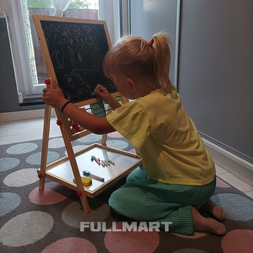Дерев'яний - каркас багатофункціональної дошки, що розвиває, повністю виготовлений з дерева - все ідеально відполіроване і безпечно для дітей . Дошка обертається та може використовуватися двома способами. Воно може бути звернене до нас як з чорного, так і з білого боку . У комплект входять великі гвинти, які дозволяють зручно обертати та змінювати положення.