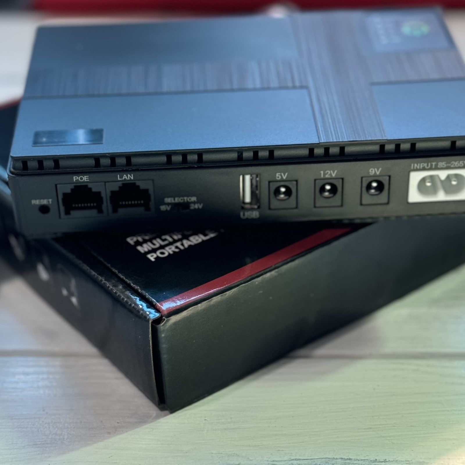 Міні UPS 10400mAh (ДБЖ Джерело Безперебійного Живлення) на 12в 9в 5в для WiFi роутерів, ip камер і всього живиться від 12/9/5 вольт. Наприклад, WiFi роутер 9V/12V разом із GPON 12V може працювати приблизно 8 годин при стандартному споживанні роутера 0.2-0.5А/год.