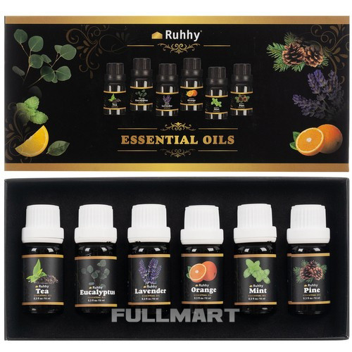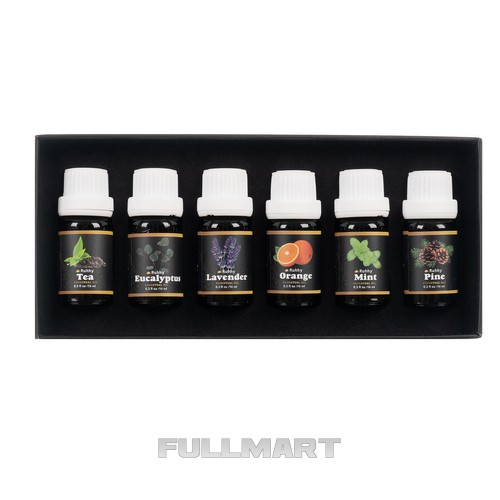 - 6 РІЗНИХ АРОМАТІВ – весь набір має 6 різних ароматів, таких як: евкаліпт, апельсин, чайне дерево, м'ята, лаванда та сосна. Усі масла запечатані у флаконах ємністю 10 мл кожен .