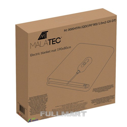 СПЕЦИФИКАЦИЯ – мощность: 65Вт; материал: полиэстер; электропитание: 220-240В, 50-60Гц; количество уровней нагрева: 3; размеры: 190/80 см; длина кабеля: ~150 см; вес одеяла: 1 кг; вес с упаковкой: 1,4 кг.