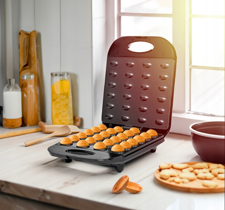 Наш пристрій для випікання печива у вигляді горіхів з начинкою з крему дозволить вам швидко приготувати 24 половинки за один цикл смаження .