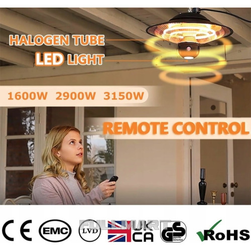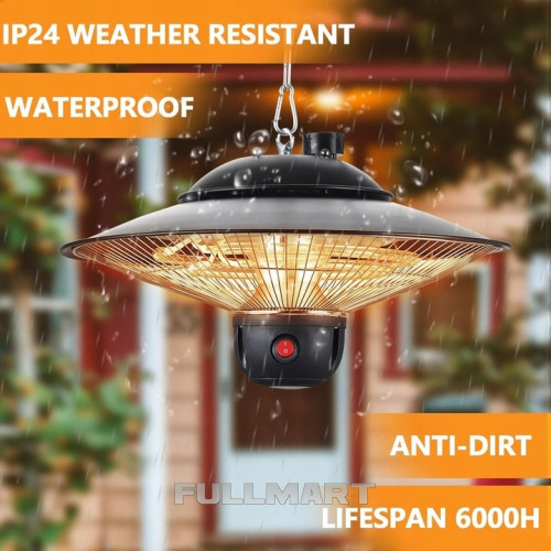 Електричний обігрівач для патіо, монтаж на терасі на стелі, для внутрішнього або внутрішнього використання, чорний, 2000 Вт