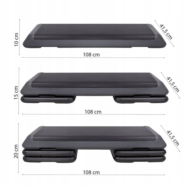 Ми оснастили нашу сходинку регулюванням висоти, тому, додавши додаткові базові блоки, ви зможете підвищити рівень складності вправ, що виконуються. Вирішуйте самі інтенсивність тренувань, маленькими кроками збільшуйте свій зріст, прогресуйте та прагнете фігури мрії!