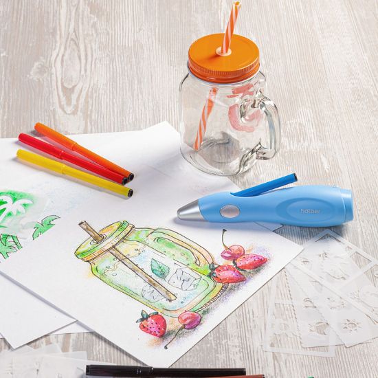 Он расширяет возможности для творчества, превращая обычные фломастеры в инструмент для красочной аэрографии. Вы и ваш ребенок сможете создавать рисунки с потрясающими визуальными эффектами, недоступными обычным фломастерам. И не только на бумаге, но и на дереве, пластике и стекле!