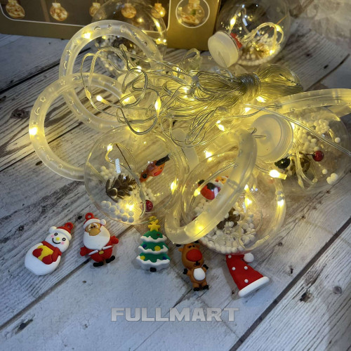 Довжини світлодіодної гірлянди вистачає для декорування невеликого приміщення. Десять великих кілець із фігурками всередині на однаковій відстані один від одного розташовані на прозорому дроті. Оскільки провід прозорий, він не заважає якісному декору та практично не помітний під час роботи гірлянди.