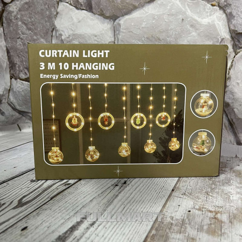 Гірлянда штора "Круги та кулі" 3м тепле біле світло (ялинка, сніговик, дід мороз, олень, шапка) SF-3-теплий