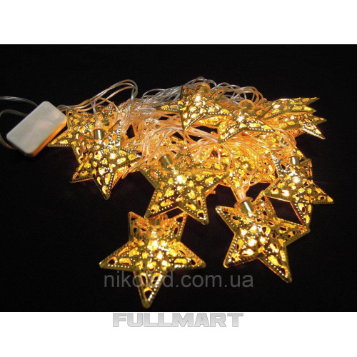 Гірлянда світлодіодна Золоті зірочки 20led колір теплий, прозорий провід