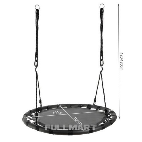 ВЕЛИКЕ СИДІННЯ - гойдалка має широке кругле сидіння, виготовлене із залізної рами, матеріал - поліестер + нейлон + Ева . Вантажопідйомність до 150 кг можлива завдяки використанню плетених канатів завтовшки 10 мм. Це гарантує безпеку та дозволяє навіть дорослим пережити хвилини радості. Це ідеальне рішення для великої родини. Його розмір і форма роблять його придатним для кількох людей.